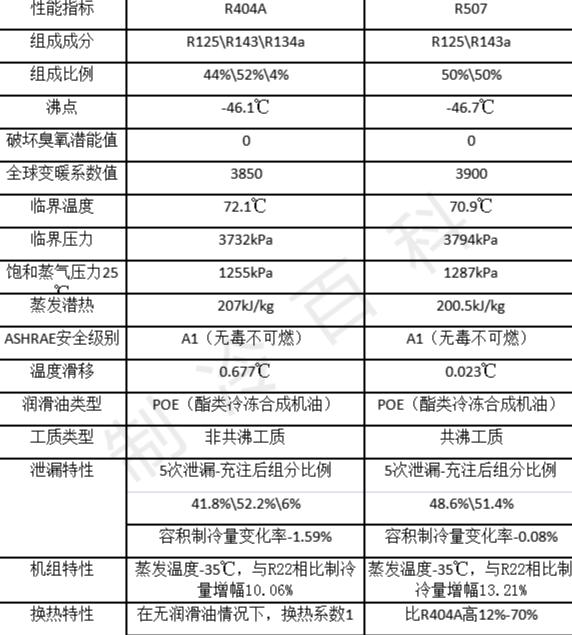 2、R404a與R507的壓力溫壓表上的數(shù)據(jù)表明,二者之間的壓力幾乎相同,,如果大家平時留意下用的系統(tǒng)配件,會發(fā)現(xiàn)熱力膨脹閥上的標(biāo)示說明是R404a與R507共用的。