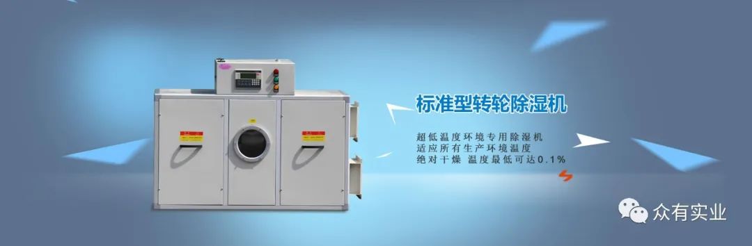 除濕機(jī)的選型:用一般空調(diào)壓縮機(jī)的冷凍除濕法只能把空氣露點(diǎn)溫度降至10℃,而此軟膠囊干燥室內(nèi)的露點(diǎn)溫度要求達(dá)到1℃以下,故用一般冷凍除濕法根本無(wú)法達(dá)到生產(chǎn)工藝要求。而采用空調(diào)制冷加轉(zhuǎn)輪除濕機(jī)之組合機(jī)的方法可以輕易使空氣露點(diǎn)溫度降至-40℃