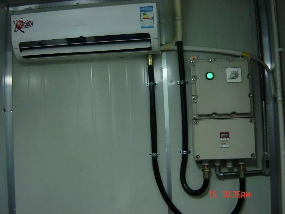 工業(yè)防爆空調(diào)保持普通空調(diào)基礎(chǔ)上,對電氣系統(tǒng),包括壓縮機、風(fēng)機、電氣線路進行防爆處理。控制線路采用以光耦固態(tài)繼電器為核心的電氣制系統(tǒng)進行整體防爆,原保持原來空調(diào)的基本功能下,簡化結(jié)構(gòu),簡化操作,使設(shè)備在性混合氣體環(huán)境中能安全使用。