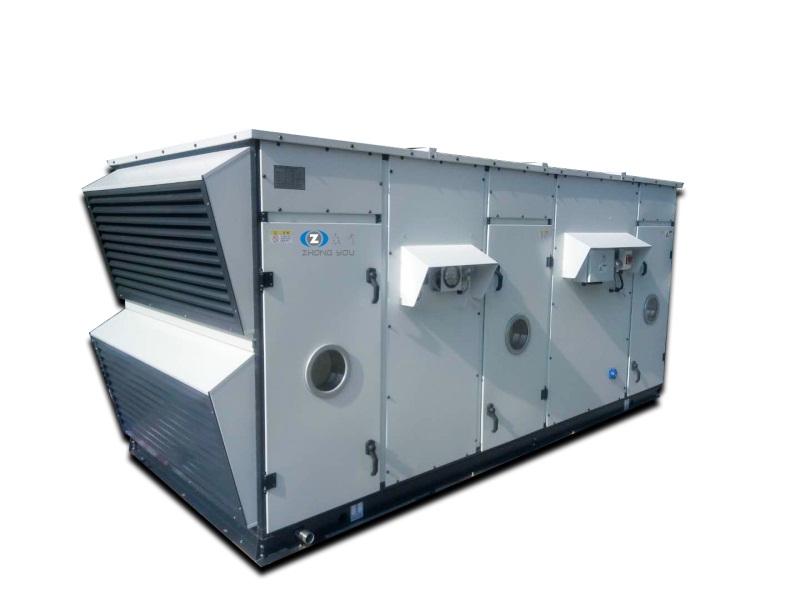 屋頂式空調(diào)機(jī)組是一種大、中型單元整體式機(jī)組,由壓縮冷凝段、蒸發(fā)過濾段、送風(fēng)段三段組成。按功能可分為:單冷型、電加熱型、恒溫恒濕型、恒溫恒濕潔凈型、熱泵型等類型。